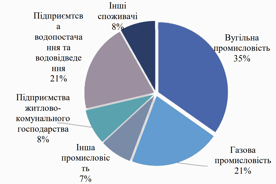 Сегмент "последней надежды", т.е. клиентов единственного поставщика в этом сегменте - ГП ВЭД "Укринтерэнерго", хотя и незначителен, но тоже представляет интерес, поскольку показывает наиболее проблемные отрасли. Это, ожидаемо, угольные предприятия, предприятия водоснабжения и водоотведения и предприятия жилищно-коммунального хозяйства.